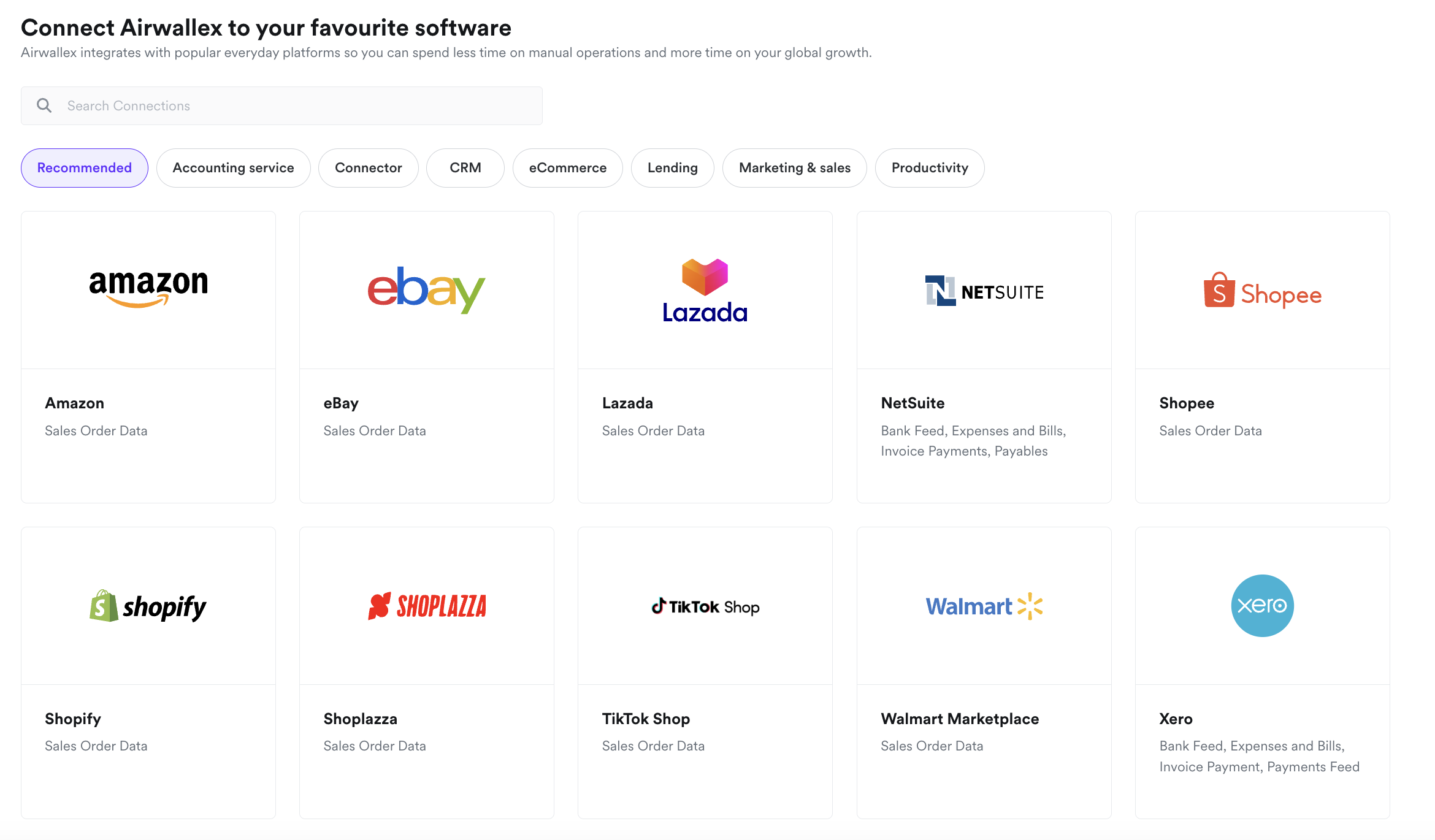 Note:Accounts with prior Airwallex transactions are pre-selected by default.