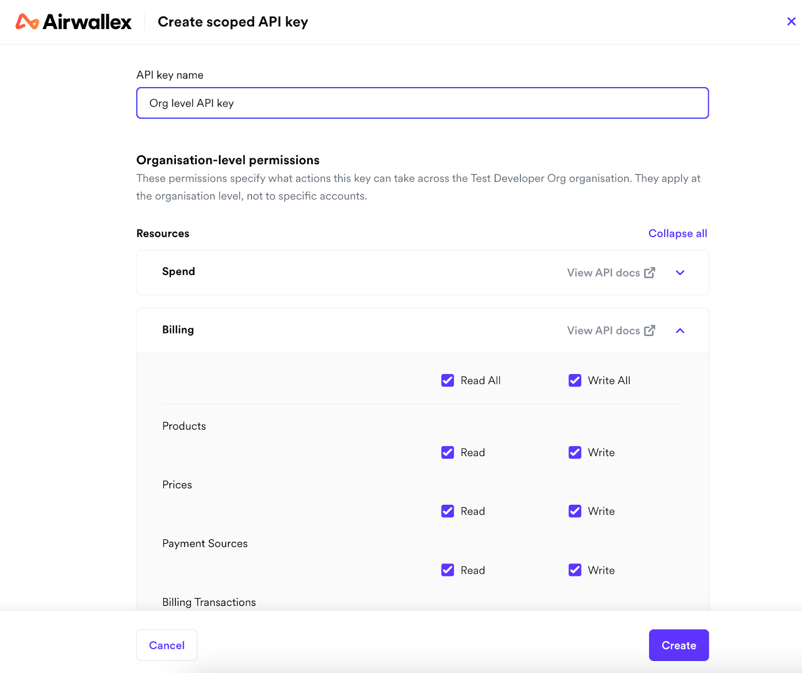 - Create a new organisation-level API key