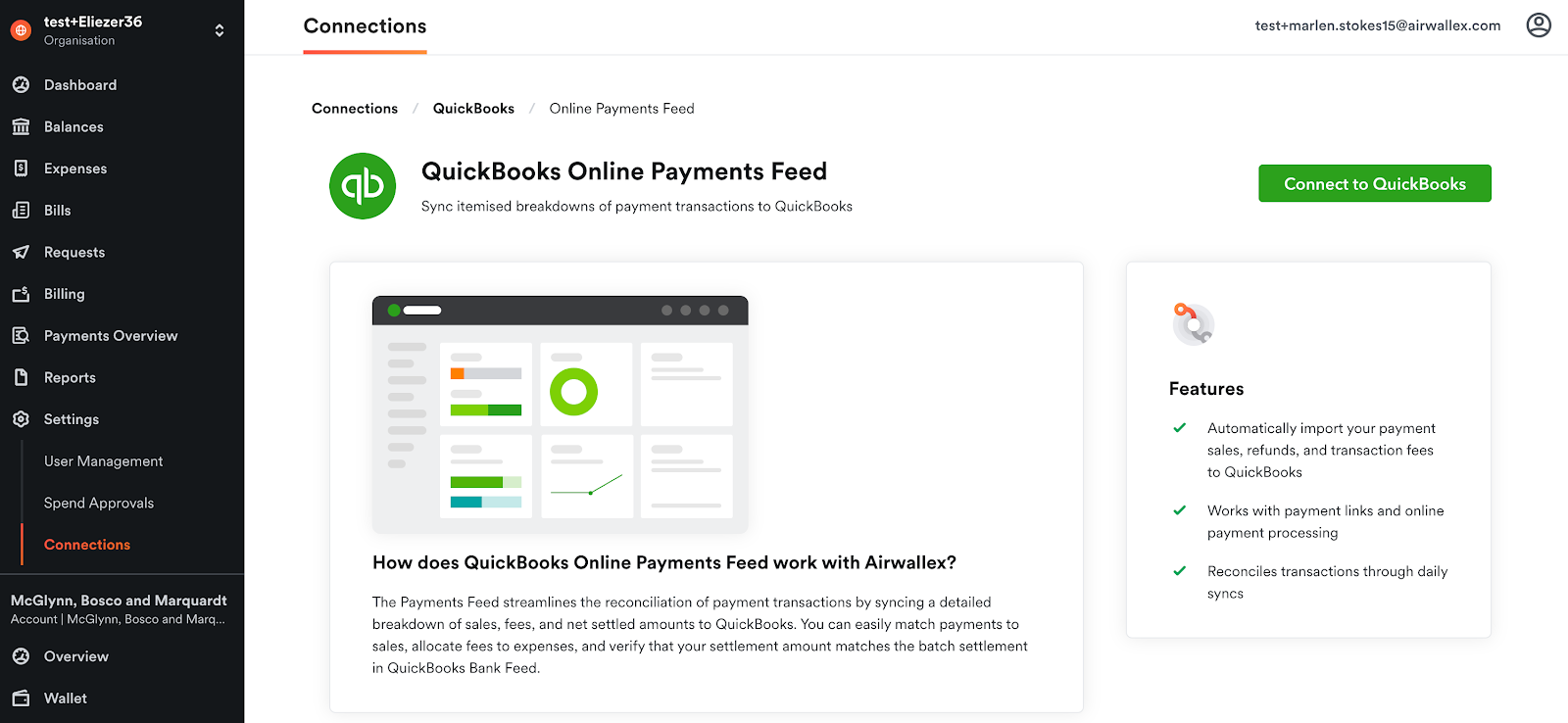QuickBooks Online Payments Feed automatically syncs detailed records of Airwallex Online Payments (payments, refunds, fees and disputes) into QuickBooks Online, simplifying reconciliation and reducing manual effort and errors.