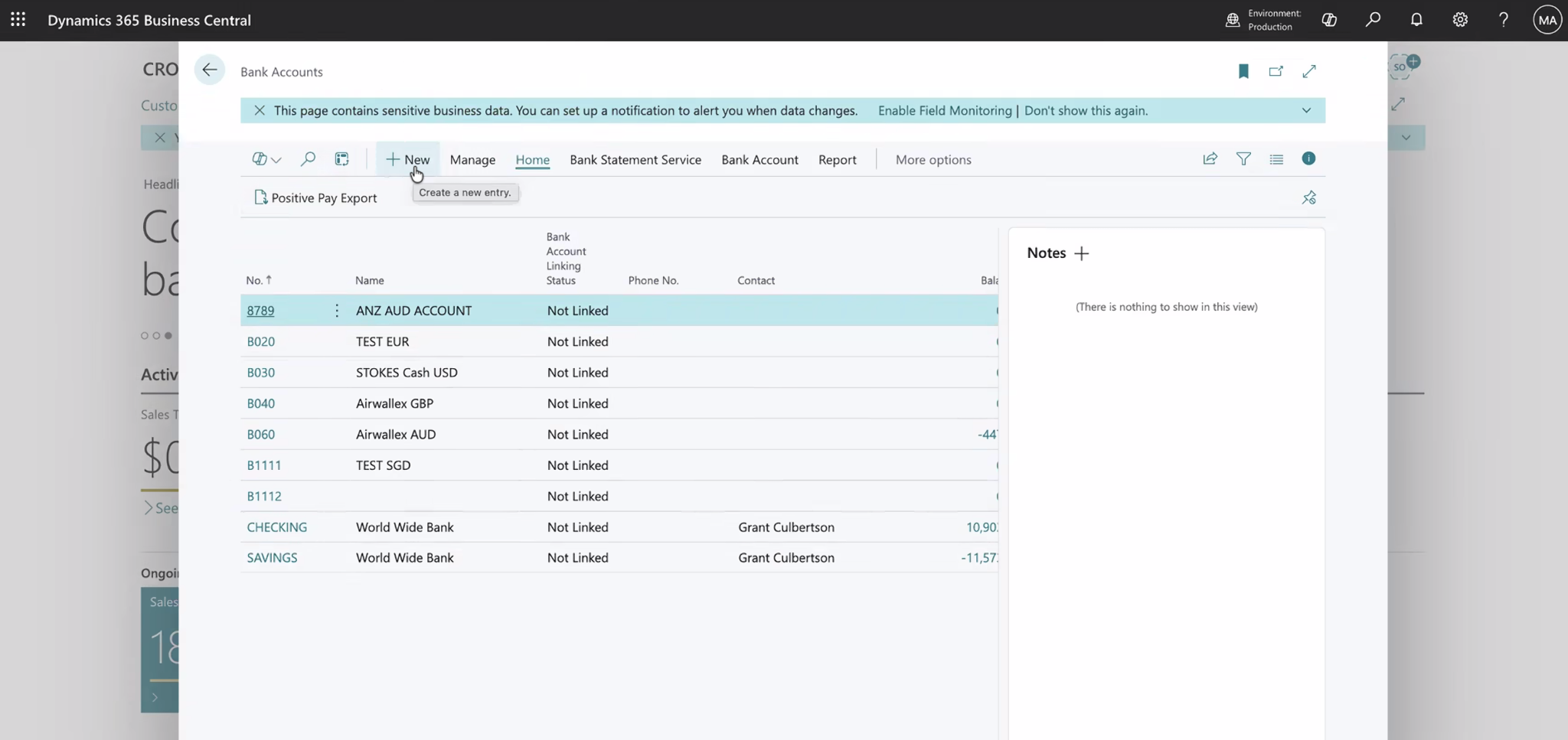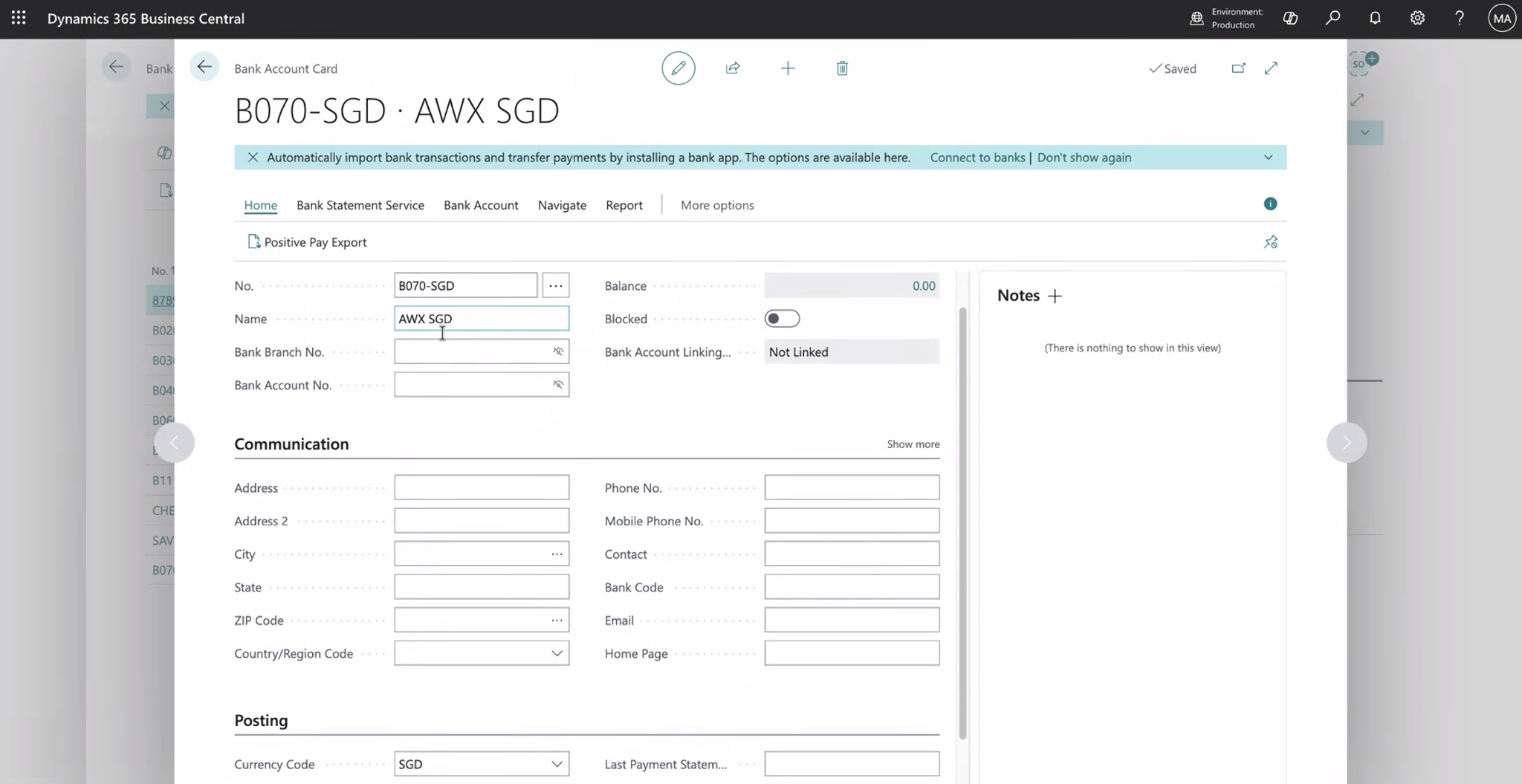 How to create a Bank Account in Business Central