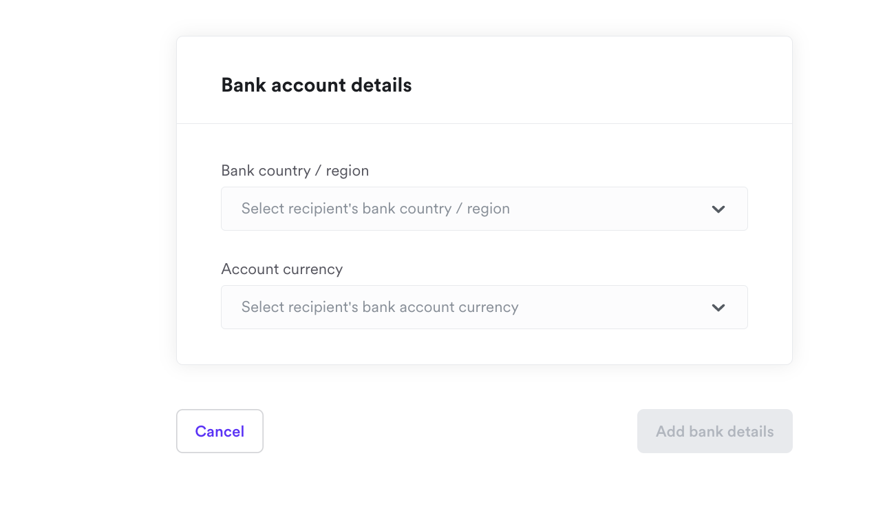 Step 2: Add your bank details on this page. The exact fields will vary depending on the selected country