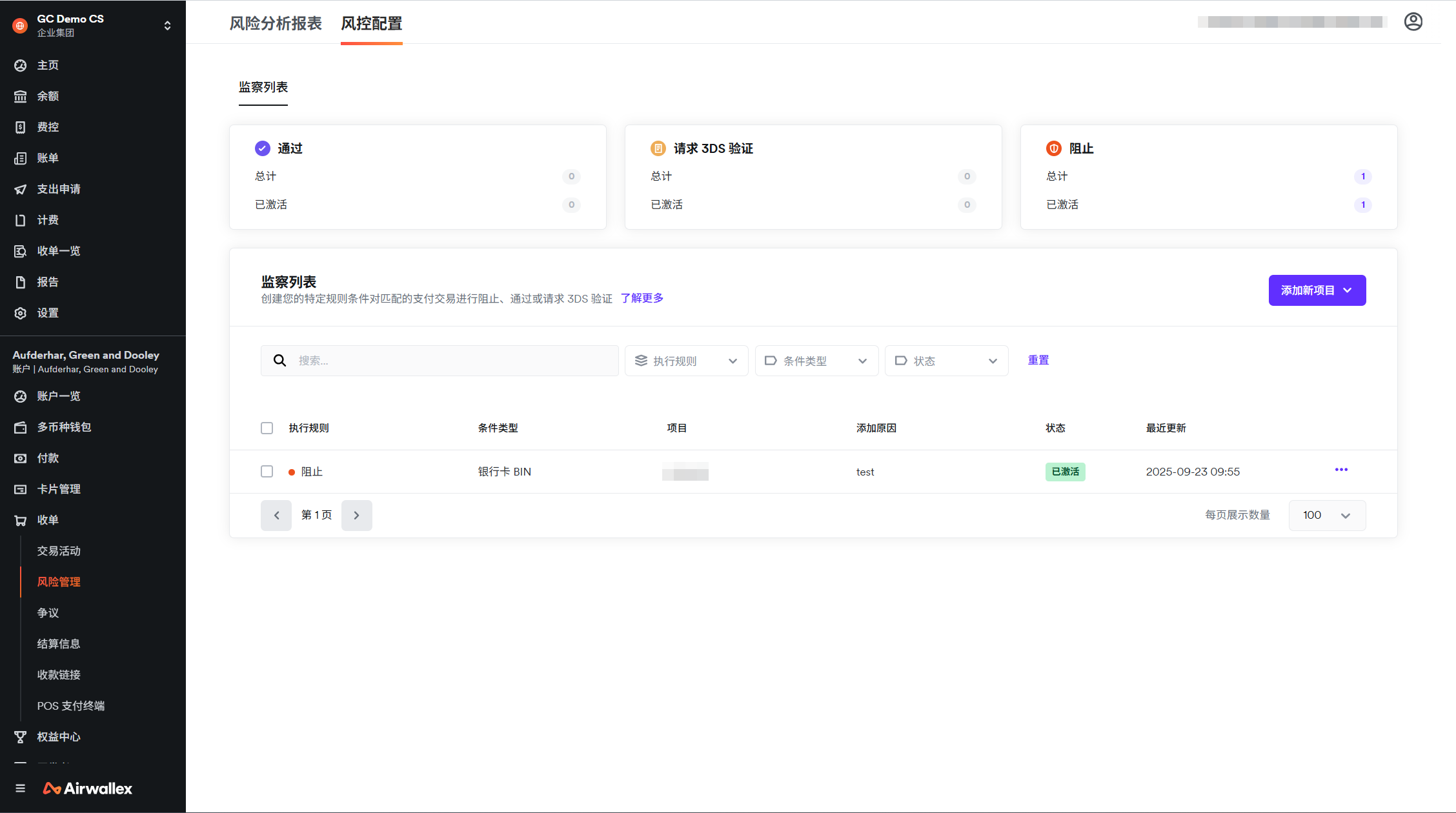 需要注意的是,通过或请求3DS验证监察列表上的事项可能会被合规规则拒绝。