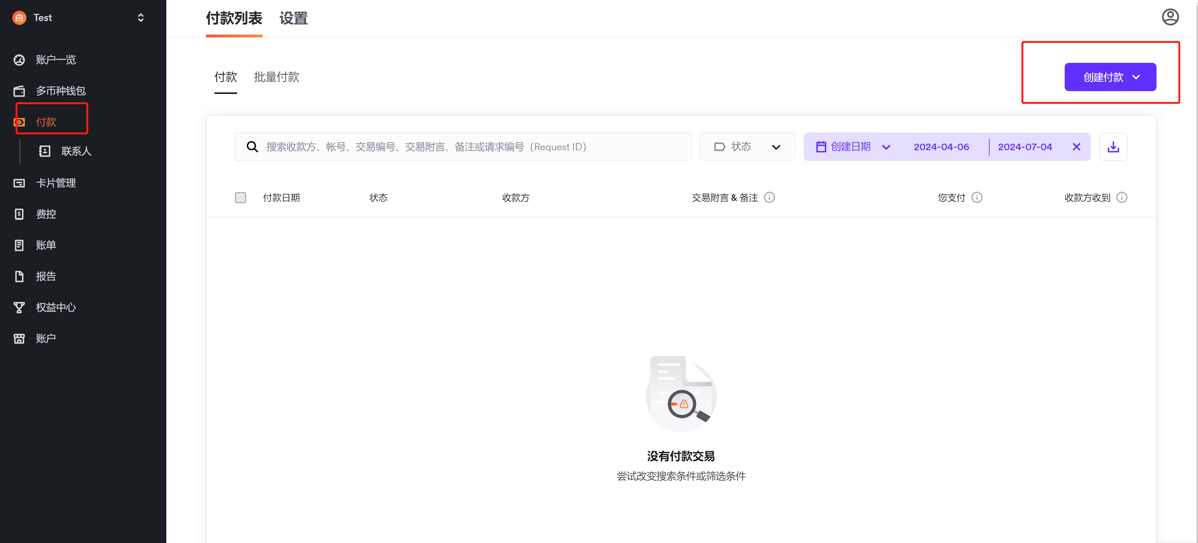 - 或者,通过侧边导航栏,点击多币种钱包 > 付款